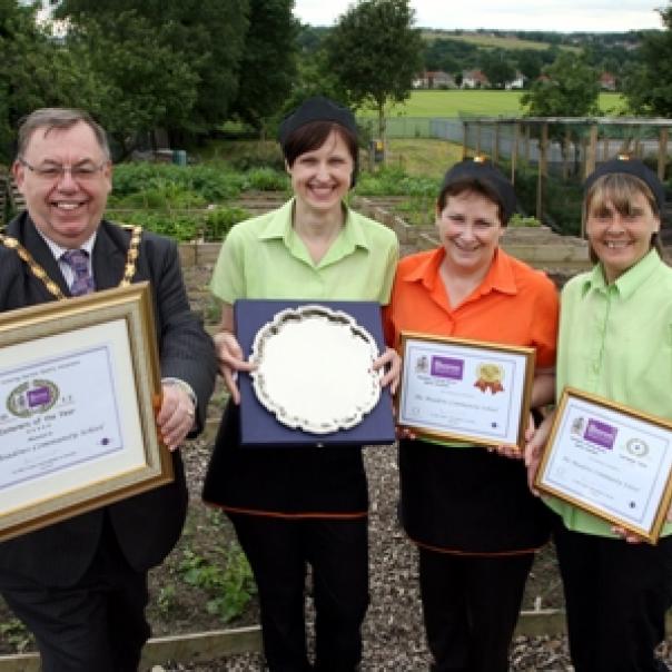 Triumphant school caterers are celebrating after scooping awards for providing top-notch food in Derbyshire County...