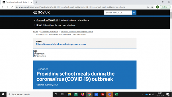 Department for Education updates lockdown Free School Meals instructions