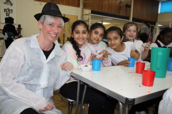 The pupils, staff and catering team at Mellers Primary School also had a special guest on Friday - Mary Lester. Getting involved with setting up the dining room and serving the school meal as part of the team, Mary explained: “I really enjoyed working alongside this passionate and fast-paced, super organised team.
