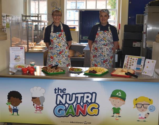 The Educaterers catering team has been busy serving up to 188 lunches a day from behind the school’s catering counter, which has been decorated with Educaterers’ ‘Nutri Gang’ who encourage children to eat healthy foods.