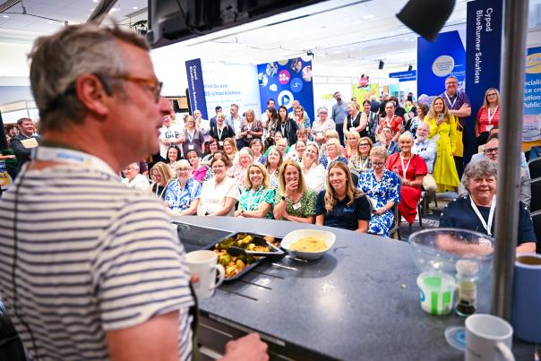 Hugh talked about his career, inspirations and views on school food whilst doing a ‘schools twist’ on one of his recipes from the River Cottage.