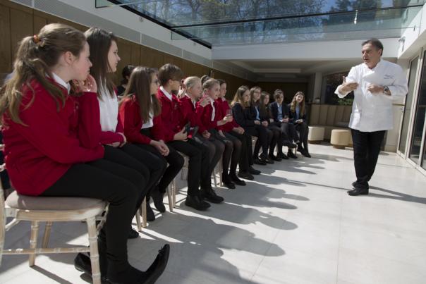 A group of children from Bolsover CofE Junior School and Kesteven & Grantham Girls School were given a tour of Le Manoir's kitchens, gardens and bedrooms as well as an inspiring talk from chef patron Raymond Blanc.