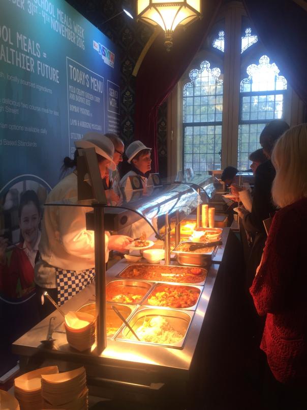 Members of Parliament enjoyed a hot school meal this lunchtime at LACA’s (Lead Association for CAtering in Education) event held today in Parliament as part of National School Meals Week. Over 20 MPs dropped in for a taster of a meal that would be available to pupils across the country at lunchtime in schools. School Chef of the Year winners Kath Breckon, Kate Davies and Tanya Watkins dished up lunch at the event to MPs such as Sharon Hodgson, Roberta Blackman-Woods and Lord Blunkett. LACA chair Sally Shadrack, said: “I think what’s been important about today is being able to meet MPs face to face and having the chance to talk about what’s great about school meals.” Barking & Dagenham provided the hot food on the menu, which included a mild creamy chicken curry, bombay potatoes and a lamb & aubergine moussaka. School meals services company, Caterlink provided the salad bar, desserts and homemade bread. Pupils from Calverton Primary School in Newham were on duty to hand out ‘I am a school meals supporter’ stickers and posed for photos with a number of MPs. National School Meals Week takes place from October 31st - November 4th.