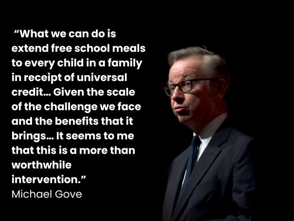 Gove said: “What we can do is extend free school meals to every child in a family in receipt of universal credit… Given the scale of the challenge we face and the benefits that it brings… It seems to me that this is a more than worthwhile intervention.”