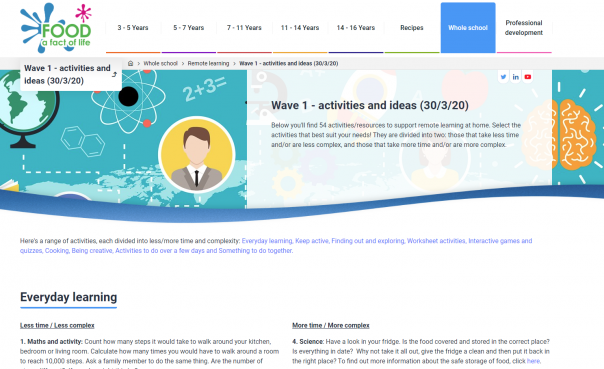“As such, each resource will use elements of food science, healthy eating or cooking to form the basis of the activity, while teaching other valuable skills.