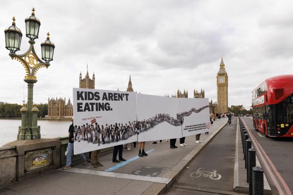 The billboard used in their campaign represents the ‘queue’ of 900,000 children in poverty being denied free school meals. If this was a real queue of children, it would stretch 342 miles equating to the distance from London to Edinburgh.