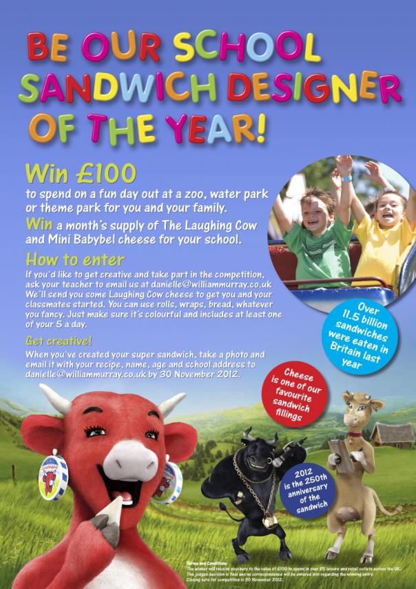 Entrants have to design a sandwich using The Laughing Cow cheese. To get your class started simply email danielle@williammurray.co.uk for some free Laughing Cow cheese to experiment with.