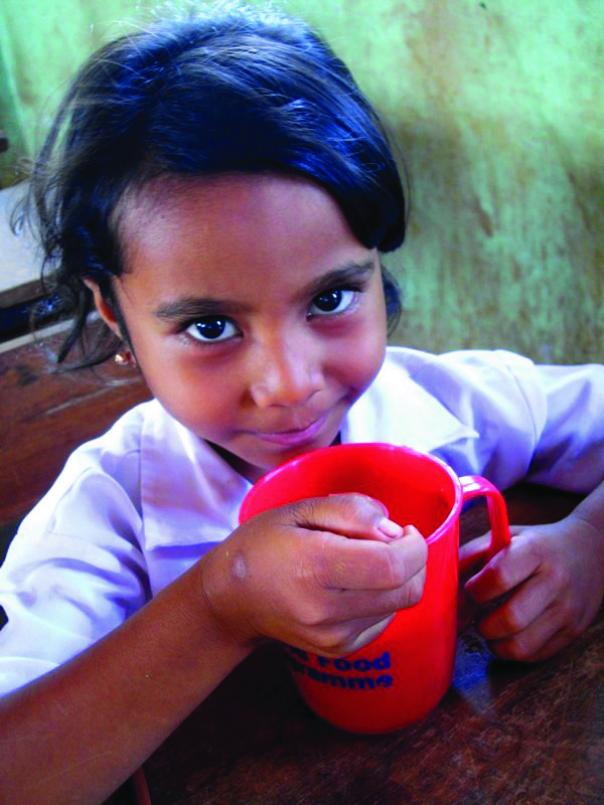 After helping the head mistress, seven cooks and mothers who support the school meals project by cooking and preparing food for 248 pupils each day in Kupang, he travelled the following day to meet the local mayor, known as the bupati.