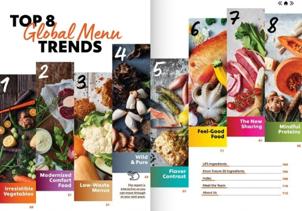 The top eight trends identified include: irresistible vegetables, modernised comfort food, low-waste menus, wild & pure, flavour contrasts, feel-good food, the new sharing and mindful proteins.