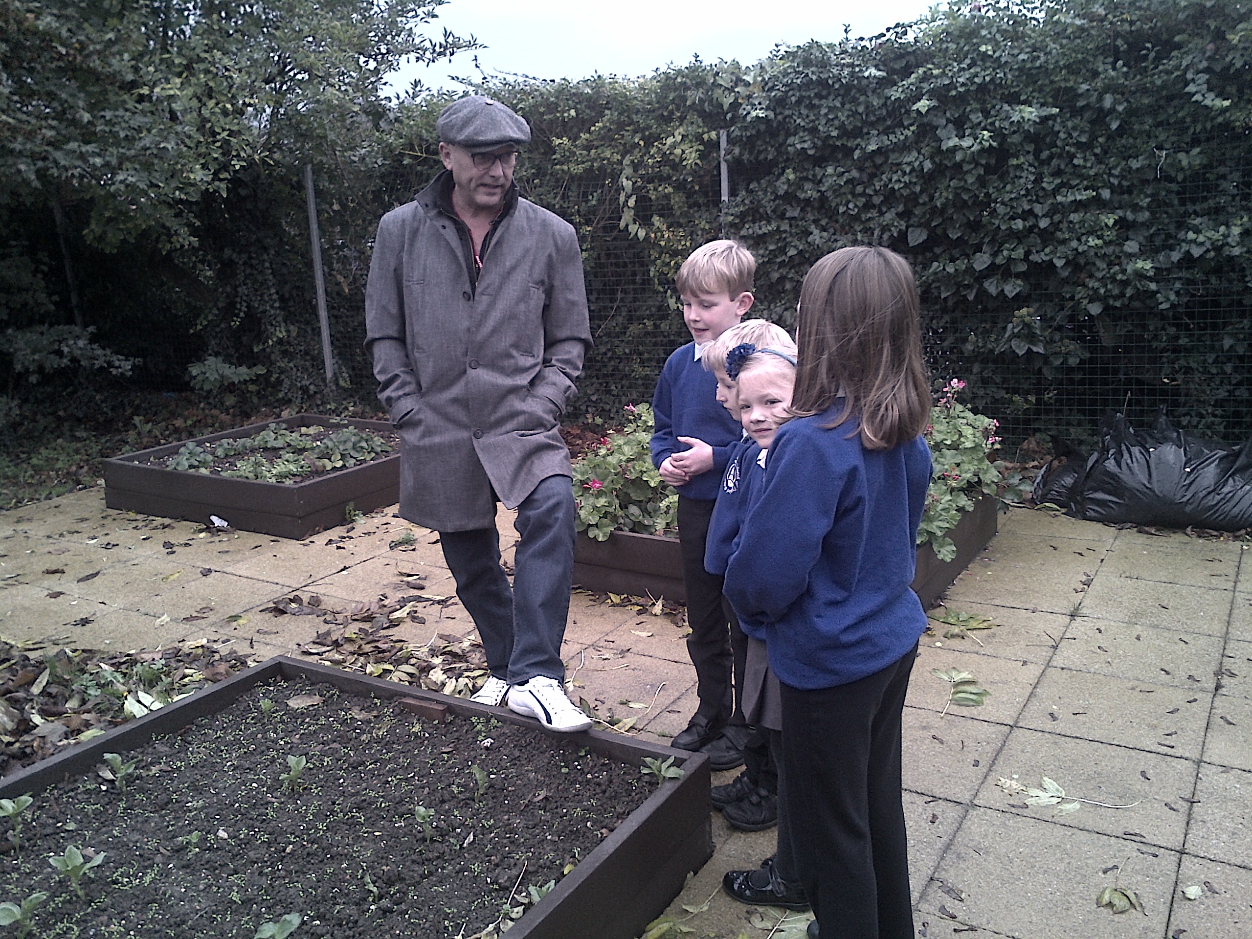 Pictured left is Gregg Wallace in the Minster School’s vegetable garden with some of the children from the school’s gardening club.